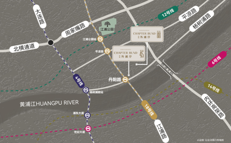 轨道交通:距 4 号线杨树浦路站、18 号线丹阳路站步行约 10 分钟,可快速换乘至陆家嘴、人民广场、静安寺;