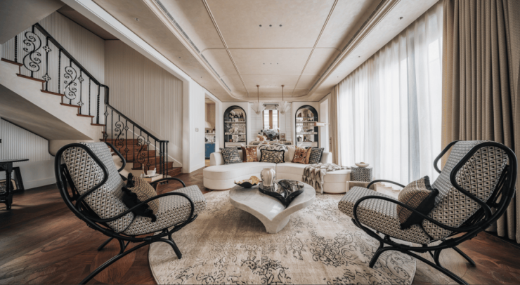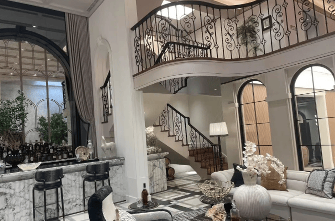 风貌别墅:38 套稀缺海派联排,建面约 175–280㎡(主力 185–260㎡);南北双花园(约 61–108㎡),6.1 米挑高会客厅,270° 环幕采光,附赠 3.9–5.7 米层高地下室 + 顶层星空露台,实用面积可达 400–600㎡,每户配双车位;