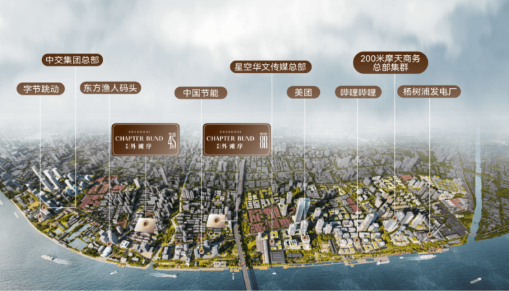 开发商:保利发展(央企)+ 杨浦国资委,联合上海建工打造;推广分为 BUND45、BUND88 两大地块;