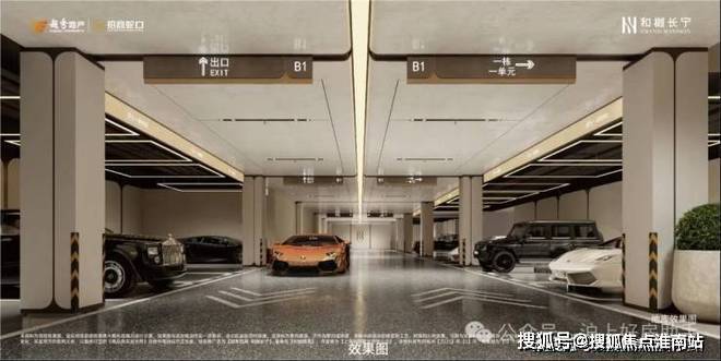 车行道地面采用水磨石、主体车道全吊顶设计,每个车位上方还都有LED环绕灯吊顶,营造仪式感归家氛围。