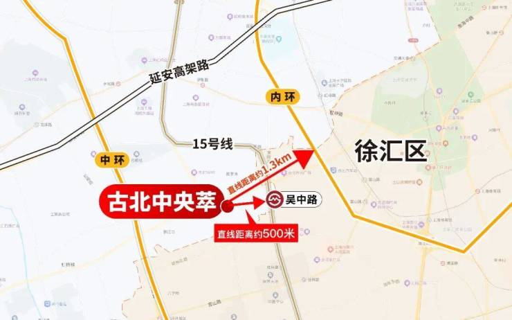 地铁交通:直线距离15号线吴中路站约500米,在建25号线古北新城站约200米;1.3公里内可上内环、中环高架