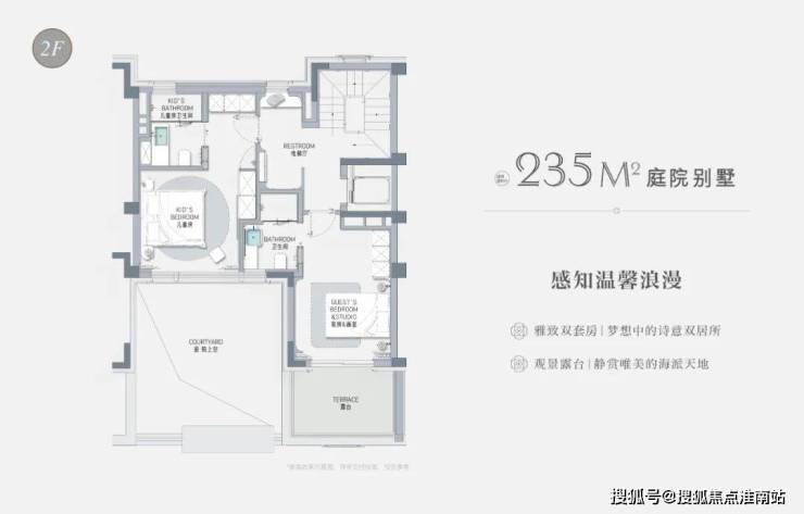 以建面约235㎡的庭院别墅样板房为例,户型 附赠地下室、庭院、露台、阁楼空间,附赠面积达到户型总建面的60%左右,市场上少之又少!