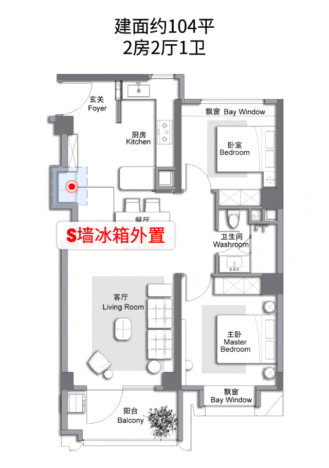 其中,98-104m²2房(66套),总价约1200-1500万