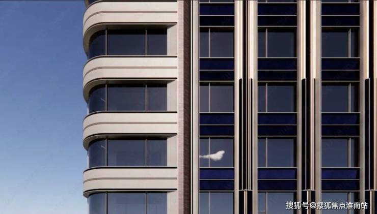 外立面方面,项目整体将打造为新海派建筑地标,设计有弧线阳台、45度玻璃、双层塔冠等,设计灵感来源于蔓楼兰;立面色调方面,将采用珐琅彩色调,具体或为珍珠蓝铝板+红色纹理+金色线条,具体材料及配色还在最终确认。