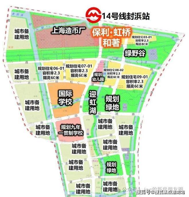 轨交:地块与地铁14号线终点站封浜站的直线距离不到500米,坐一站到乐秀路,未来可以换乘嘉闵线(在建),连接大虹桥、七宝、春申等板块。