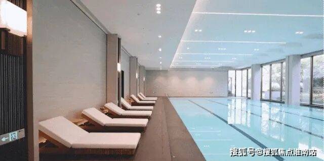 在下沉式景观庭院两侧,是不同的邻里空间。一侧是会所,涵盖恒温泳池以及宽阔的健身房空间。当业主锻炼时,不被空间局限。透过落地窗,可以一边挥洒汗水,一边尽情欣赏庭院中的美景。
