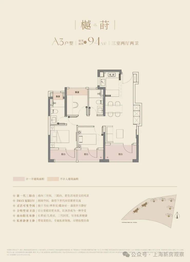 大华·望樾项目以创新理念,打造徐泾首个3.5代宅。主力户型涵盖约94-149㎡滨水公园美宅,空间设计上,采用全生命周期成长户型的理念,通过三阳台创新布局实现至高约19㎡空间拓展,为未来生活预留弹性改造可能;四开间全朝南搭配IMAX级全景窗,最大化引入自然光与日照;秉持“空间平权”理念,次卧可轻松适配双人床尺度,主卧则集合了约270°环景飘窗、独立卫浴系统及衣帽间,兼顾私密性与舒适性。