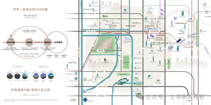 地铁交通:步行约80米至17号线徐泾北城站,4站虹桥火车站、5站虹桥机场;自驾紧邻崧泽大道、沈海高速,15分钟达虹桥核心,30分钟畅达市区