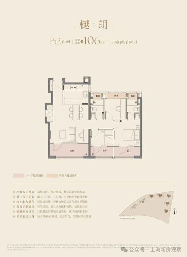核心卖点:本土国企大华集团开发,大虹桥徐泾核心板块,直线距地铁站仅80米;一二手倒挂,当前徐泾二手房成交价普遍破7万/㎡,新房价格显著低于二手,存在明确价差红利;三面环水,代建约3.4万㎡沿河公园,内部规划樱花步道、水景庭院、500米环形健身跑道;约1800㎡下沉式会所含恒温泳池、健身房、私宴厅;社区高层全楼栋采用架空层设计,融入七大主题场景