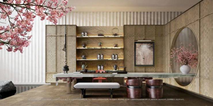 「莳花荟」的彩色玻璃穹顶与浪漫的弧形门廊、石雕相得益彰;脚下繁复纹样的石材拼花,每一片均实现了精密对纹;联名百年珠宝品牌老凤祥,打造非遗掐丝珐琅吧台,不管是选材用料还是工艺标准,都在兑现灯塔作品应有的品质承诺。