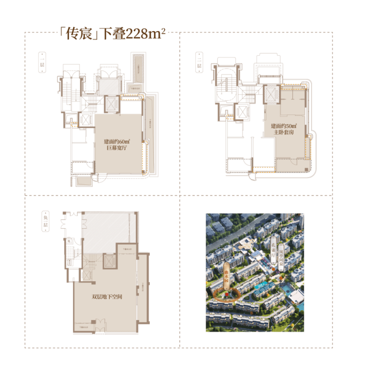 建面约230㎡海派宽境天地墅,持续上新——「传宸」下叠228,拥享建面约110㎡南向花园(边厅)、建面约60㎡巨幕宽厅、建面约50㎡主卧套房以及建面超200㎡双层地下空间,一层一境,进阶三代阖居生活;「星宸」上叠235,配备北向独立花园、建面约14㎡南向露台,建面约50㎡空中阁楼以及局部约6.3米挑高地下空间,收藏所有的热爱与志趣。