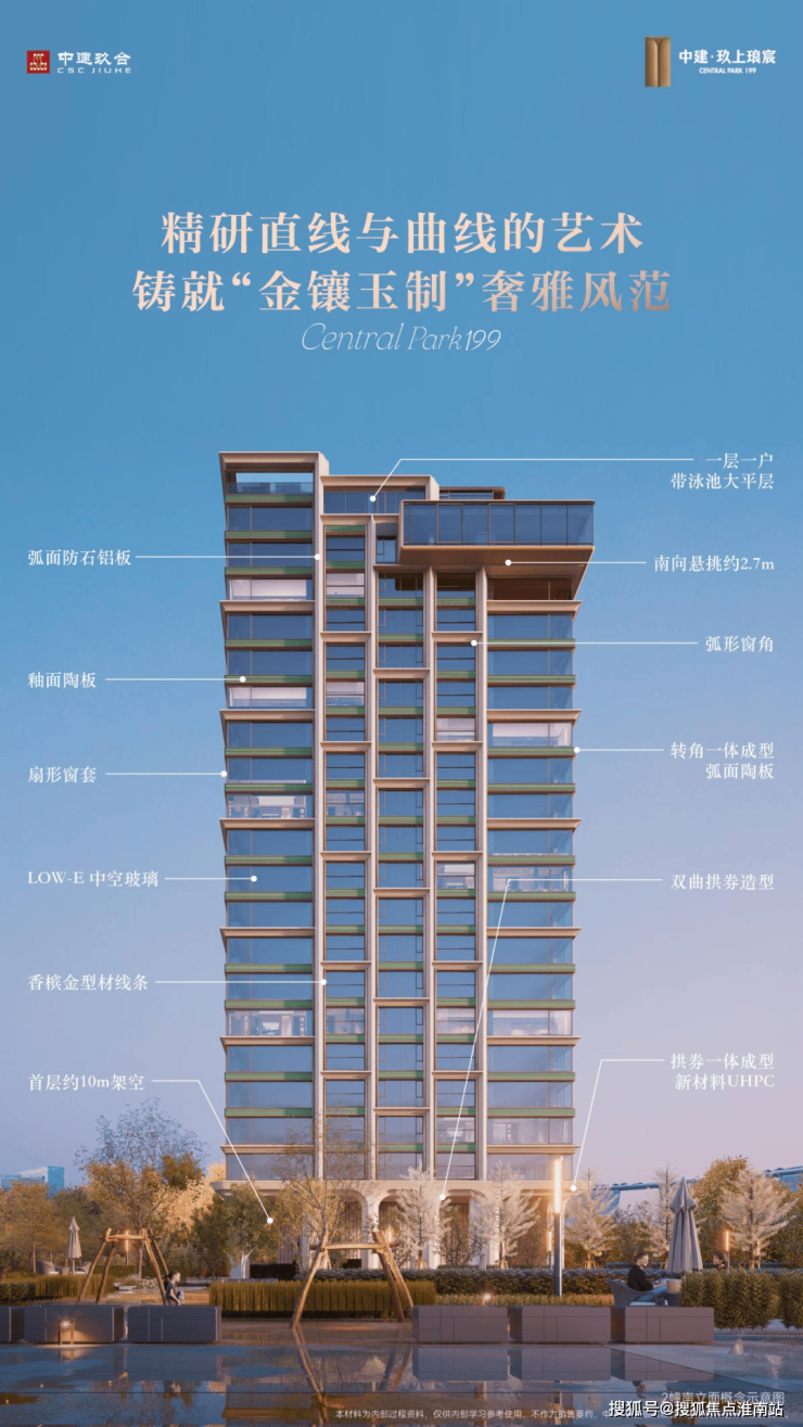 在产品设计上,中建玖上琅宸更是处处彰显着对品质和舒适的极致追求。建筑美学方面, 采用 “金镶玉制” 陶板立面,约1150℃高温烧制的天青色陶板与石材、铝板结合,既传承了东方底蕴,又兼具现代质感 。