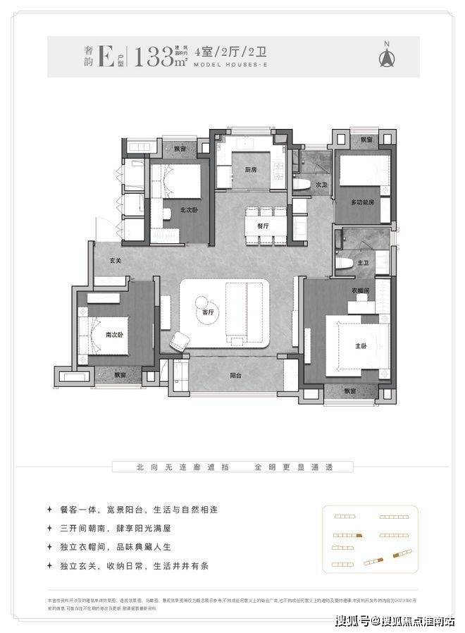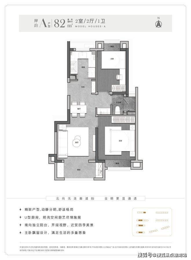 且客厅-餐厅-阳台-厨房一线连通,能真正实现南北通透。