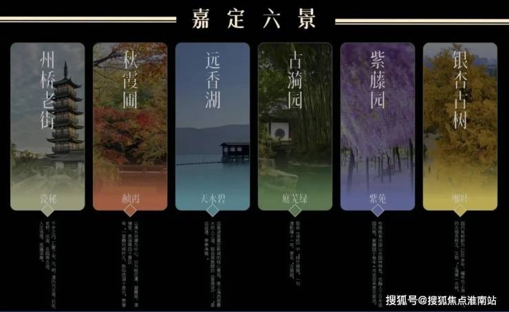 建筑们围合出的中心花园中,州桥老街、秋霞圃、远香湖、古猗园、紫藤园、银杏古树等嘉定6景被南山地产提炼、转译,形成了具有在地文化特色的6大景观主题空间。