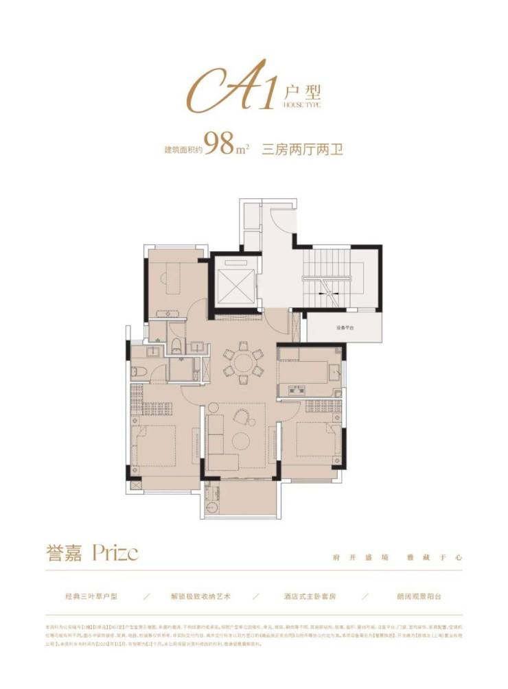 在售户型:82㎡两房/98-120㎡三房/141-144㎡四房(均为一梯两户纯洋房)