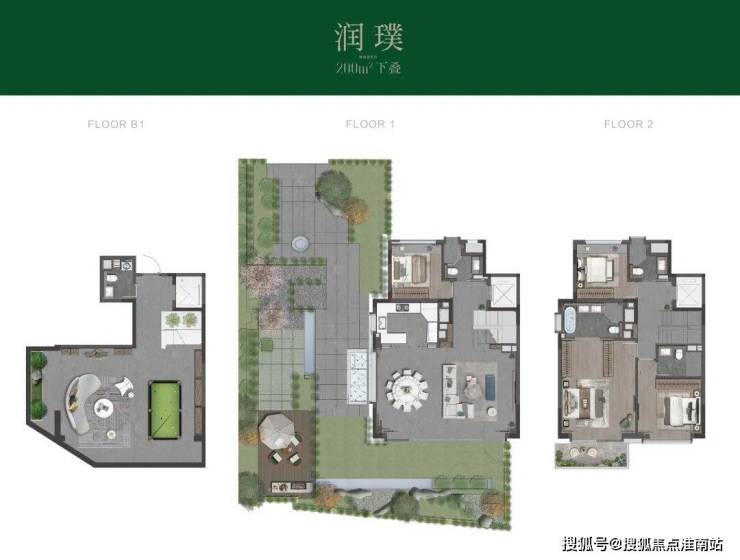 上叠从北绿地花园入户,经私家电梯直接进入3层或4层室内空间,或进入B1夹层地下室。