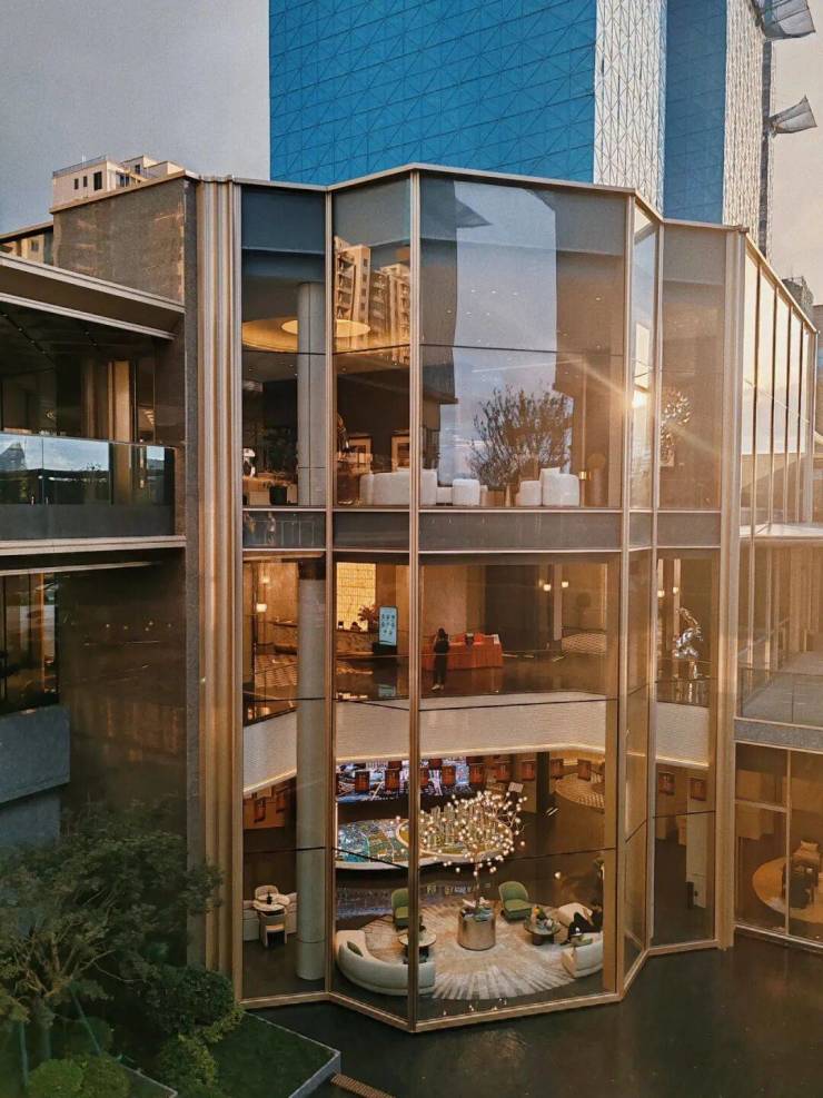 作为小区大堂,面向下沉庭院一侧的立面玻璃,通过艺术级的切割,形成水晶钻石的边界,这样的配置,放眼全杭州都难得一见。