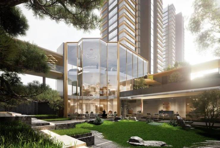 在景观设计上,时舟里还从居住思维出发,汲取了新加坡parkroyal公园皇家酒店的设计灵感,将康养、互动、全龄、体验等符号植入场景,打造“一轴两心、四苑、十景”的“天空度假未来之境”。