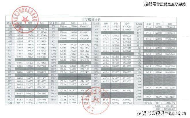 一房一价表如下
