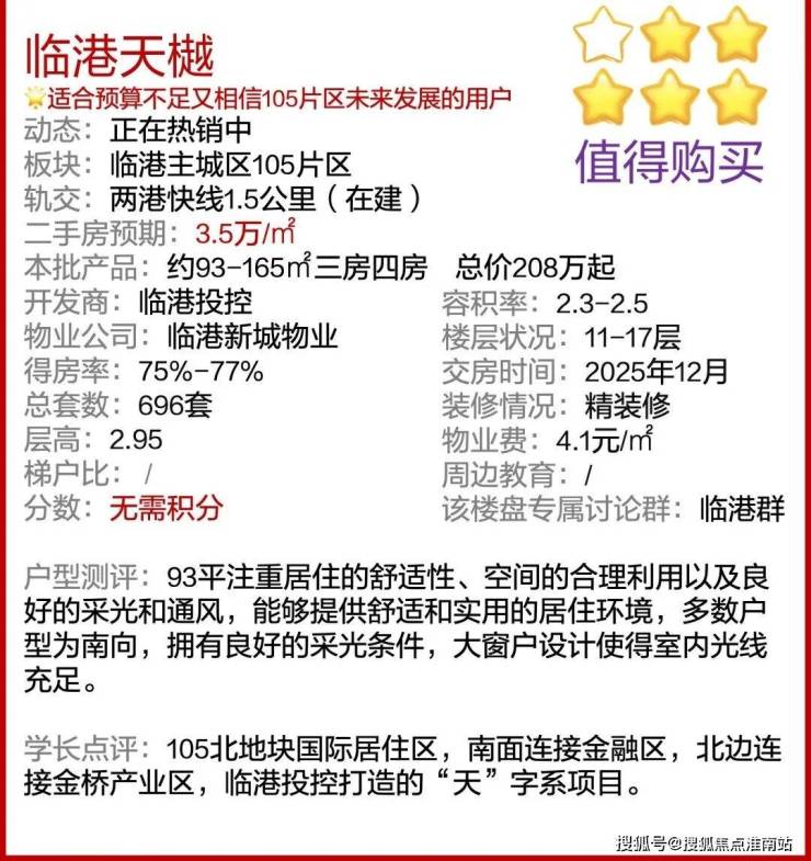 最新消息,临港主城区105片区「临港天樾」正在热销中!推出建面约93-165㎡三房四房,总价208万起!