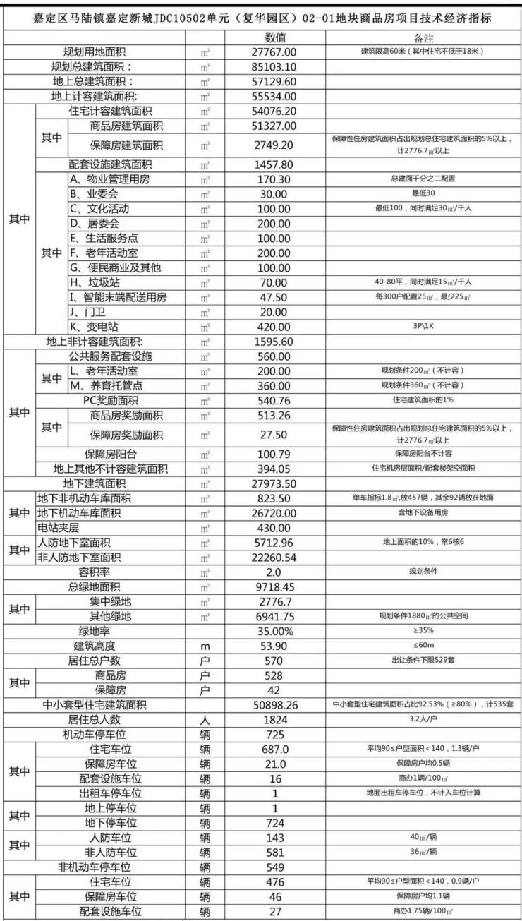 本项目拟建2层配套设施2栋,14层住宅楼1栋,17层住宅楼1栋,18层住宅楼6栋。总建筑总建面85103.1㎡,其中计容建筑面积55534㎡,容积率2.0;共570户。