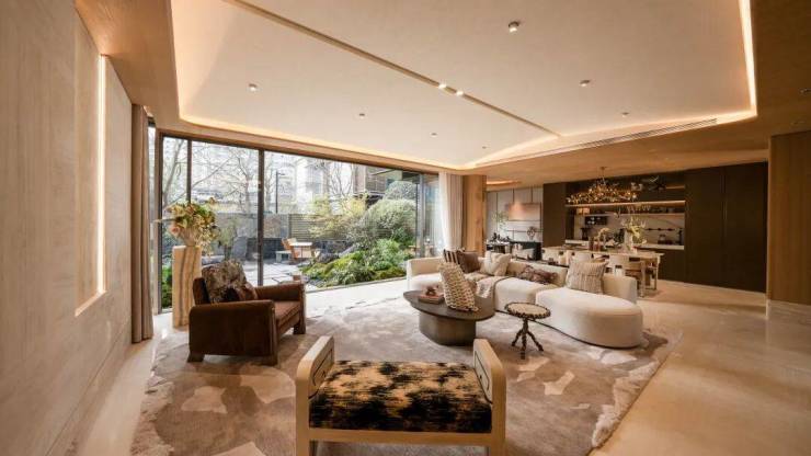 业主可将会客厅、茶室、私人影院随心布局,更可借采光井引入天光与风景,打造沉浸式下沉庭院。