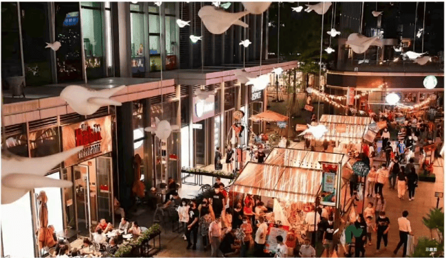 新潮烟火生活答案:社区配套约2000m2邻里商街,美食社交、现代市集和文化体验等高度融合潮流烟火,烟火气与现代感共生,叙写家楼下的生活颂歌。