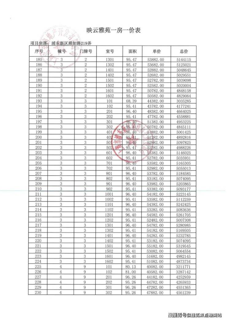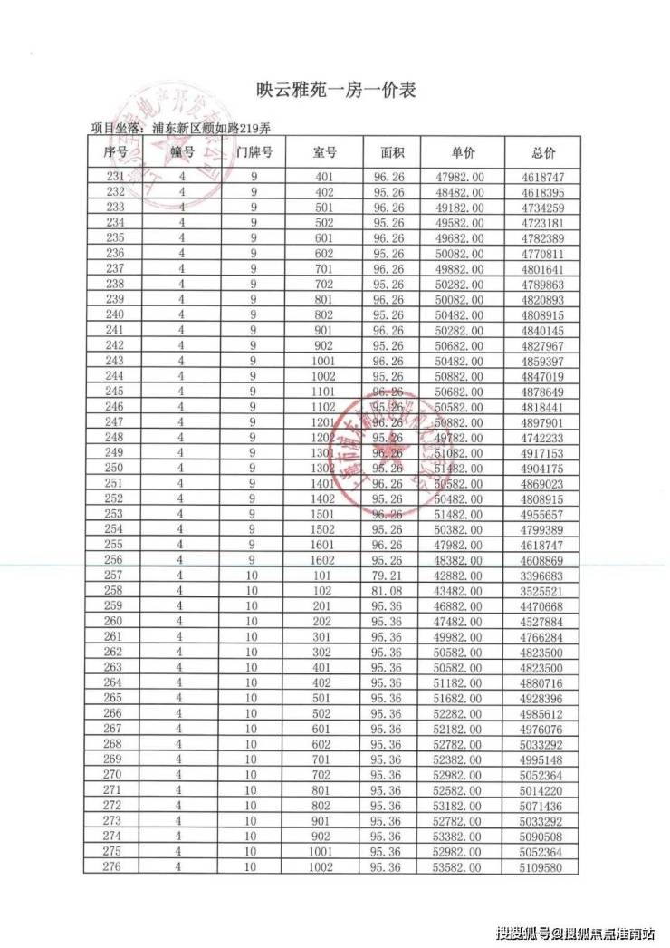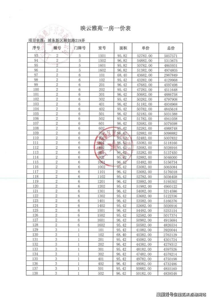 项目一房一价表▼