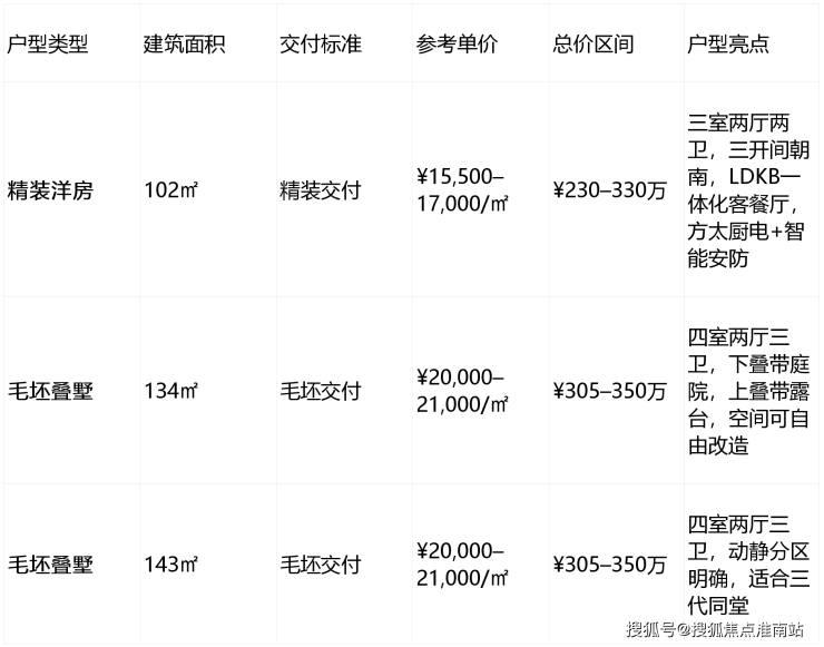 📦在售户型与价格(2026年1月最新)