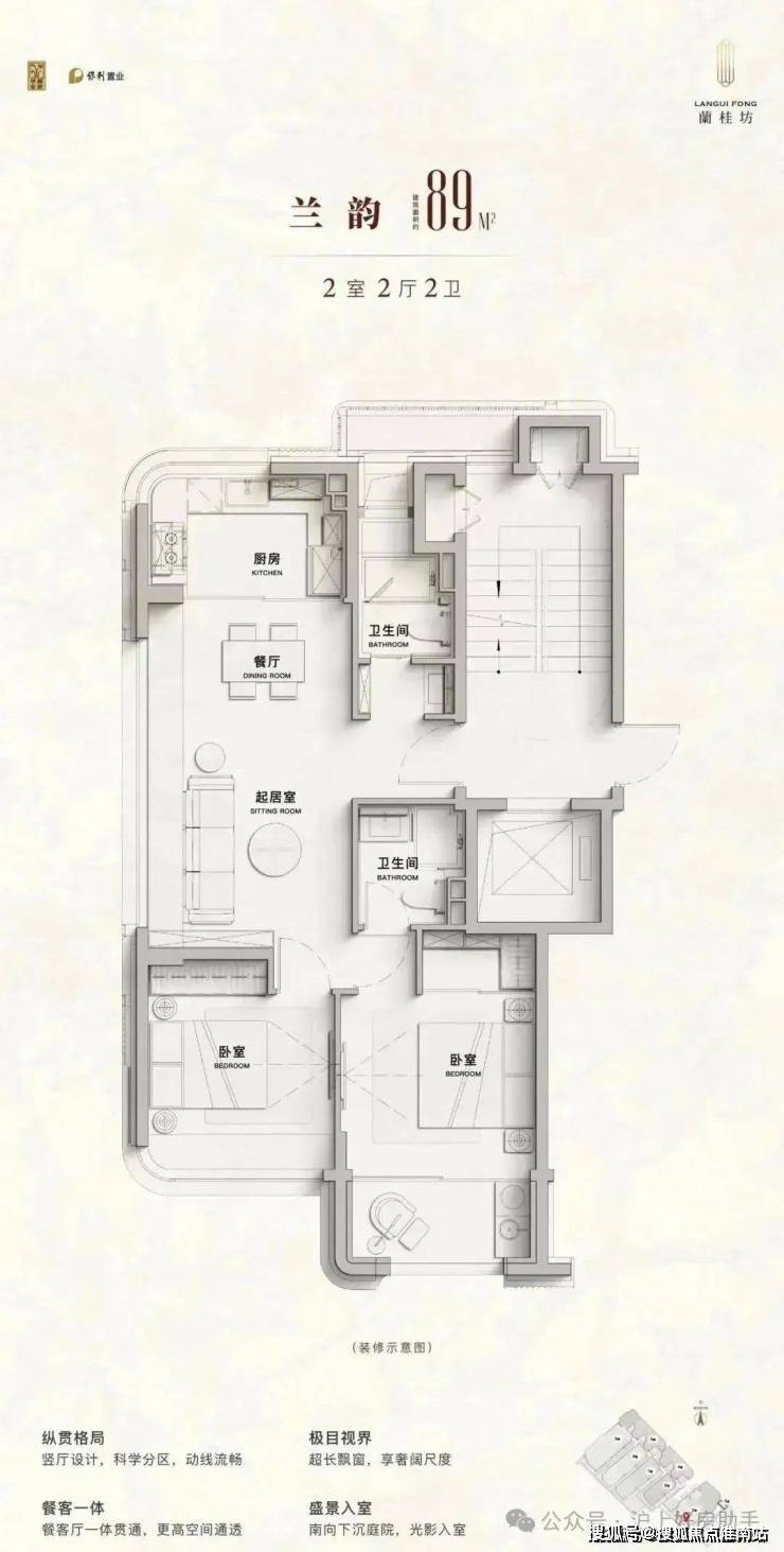 兰颂户型整体采用动静分离的格局,户型方正、南北通透,南向整体约14.8米超大面宽,赋予业主尊崇舒适居家体验;