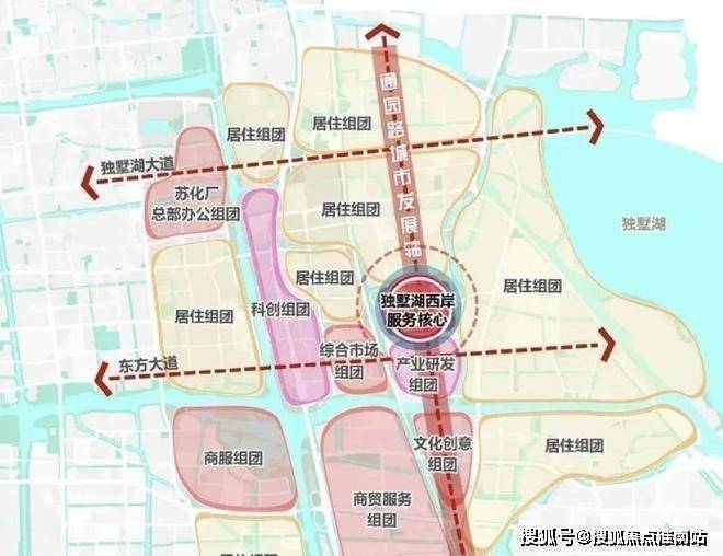 五横两纵路网:金鸡湖大道、东环、娄江快速路、独墅湖大道、常台高速、南环