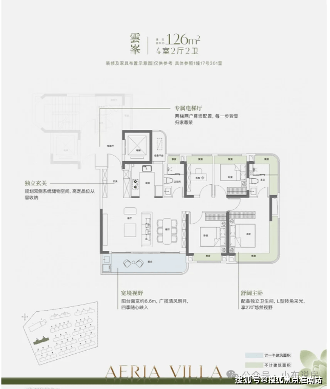 而同样去看金海汀雲台建面约125㎡左右的产品: