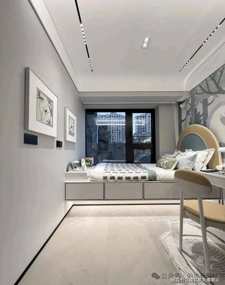 其中主卧的270°转角飘窗就有约5.7m²,通过与外立面的结合,直接做了梳妆台和储物柜,拓展了飘窗的实用性。