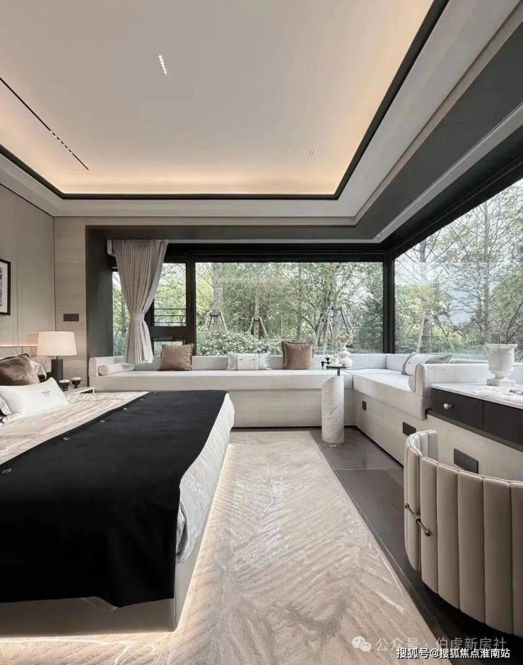 项目本次的边套设计了大量的飘窗、转角飘窗、主卧270度落地窗等设计,所以整个立面运用了大量的玻璃,构建出了非常极致的窗墙比。