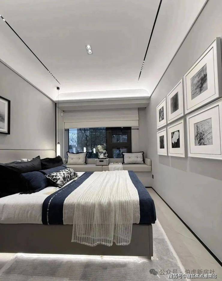 主卧转角落地窗+飘窗,也算是非常少见的了。净面宽约3.6m,不算进门的衣柜,进深大约5.7m左右。根据测算,可以放置宽约2m的床+2个床头柜(宽度约45cm/个)是可以的。