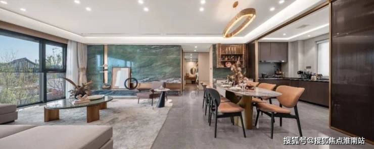 配合外部干挂铝板宋风立面,约16.8米南向面宽,大师手笔奢适空间尺度,超大面积全景落地玻璃窗设计,更加通透的视野,由内至外散发出美的哲思,让居所真正成为身心休憩地。