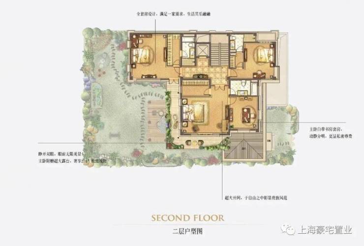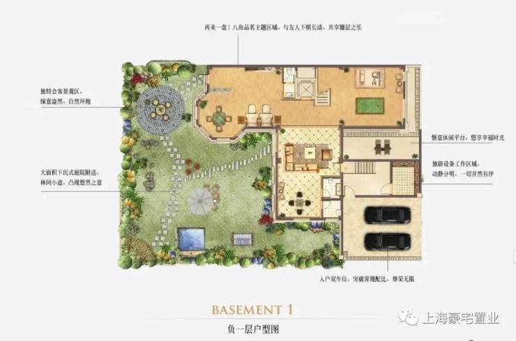 除此之外,每户都自带有2个下沉式私家花园及入户花园,其花园总面积更是达到了200平。