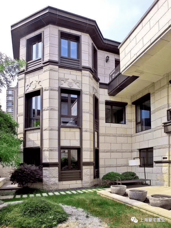 项目外立面采用石材干挂设计,延续了经典的artdeco风格 ,外立面线条丰富细腻,使整栋别墅古朴优雅,但方正的轮廓与简洁的线条却又赋予了别墅明快的现代活力。