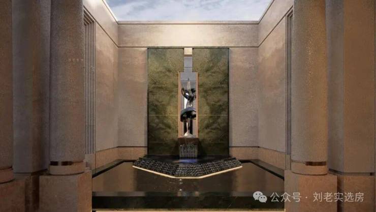 包括立面: 门头: 廊柱: 甚至是地面,用的都是石材: 这样的设计即使是在顶豪圈也不多见,上一次看到还是黄浦的 融创外滩壹号院 。