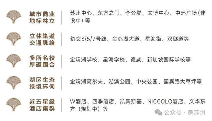 坐揽金鸡湖与独墅湖城市地标、商业旗舰、城市公园、五星级酒店、文化剧院等繁华盛景,苏州中心、东方之门、中环广场等地标配套环湖而立,奢享开放包容的国际滨水生活圈。