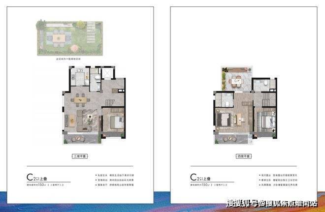 项目户型方面,面积段有两种——建面约95㎡下叠、上叠;建面约150㎡下叠、上叠。