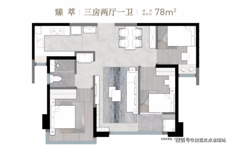 目前仅公开78㎡三房两厅一卫及89㎡三房两厅两卫。