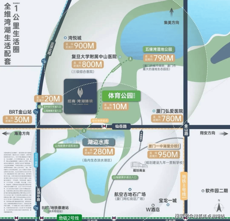交通条件:地块紧邻云顶北路和仙岳路两大交通动脉,周边还有金山路、环岛干道、五缘湾道等城市主干道。地块紧邻BRT金山站,可通过快速公交接驳地铁2号线蔡塘站、地铁3号线湖里创新园站。此外周边公交站点密集,有金山小学站、金山站、穆厝南里站等公交站点,。