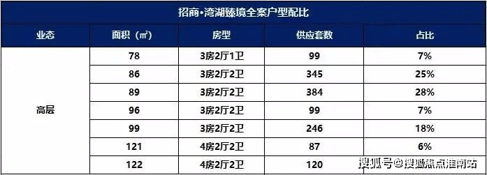招商·湾湖臻境项目规划建设1380户,[售楼中心]主力户型为78~121㎡三至四房。其中86-89㎡三房产品为主力,占比53%;其次为96-99 ㎡三房产品,占比25%;辅以部分121-122 ㎡改善四房及78 ㎡刚需小三房产品。