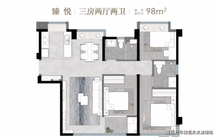 端户为98㎡三房两厅两卫、122㎡四房两厅两卫。