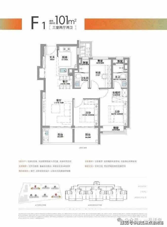 “南向双阳台+南北双飘窗”,构筑真3房户型!