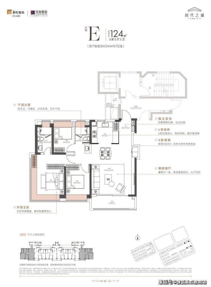 本次推出的4种户型中,建面约104㎡3房/建面约124㎡4房是首次推出的产品,更是整个项目的王炸产品。