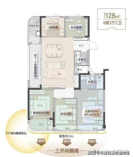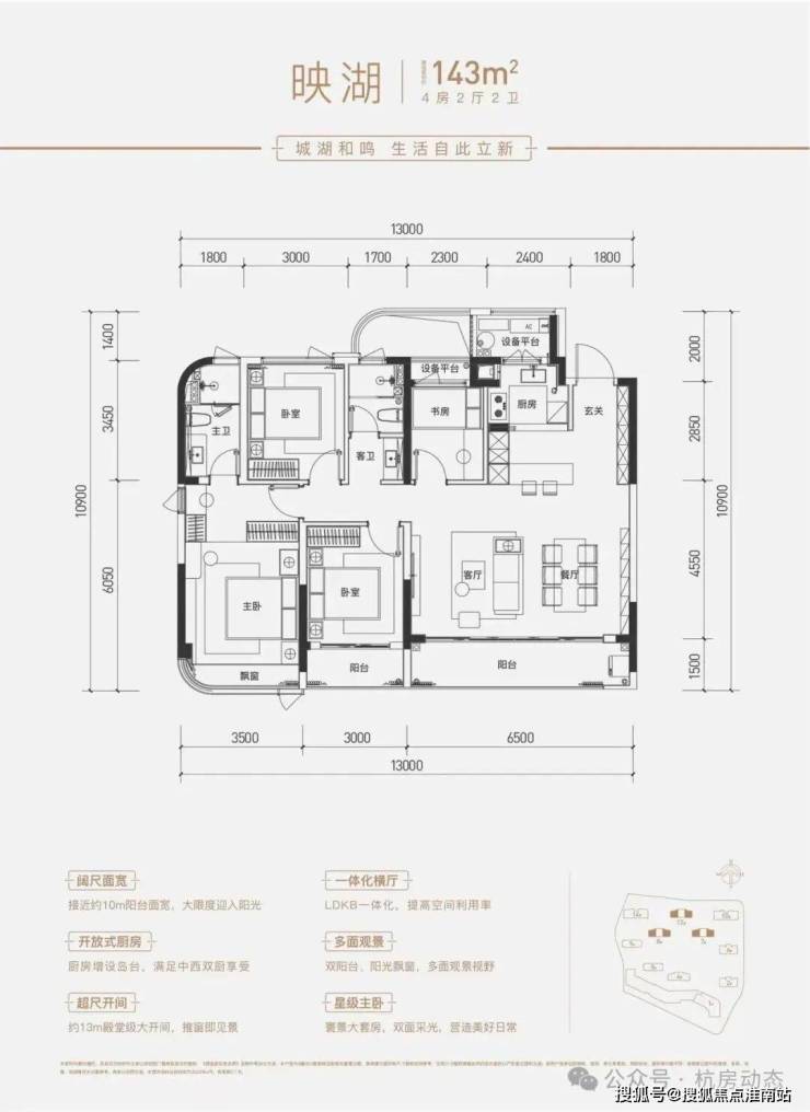 143㎡和首开的149㎡格局基本一致。这个户型一改市面主流的边厅设计,而是采用了大面宽、短进深、三面采光的超宽屏设计,南向面宽超过了约13米。不仅如此,主卧套房也拥有“约270°全景舱视野”,真正实现了室内外的无界交融。