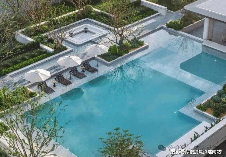 藏溪景观组团的丛生朴树按“空间骨架”精准种植,红梅与鸡爪槭的精准搭配,素墙旁的流水景观不断调整,只为呈现的意境更自然;天青组团的约400㎡镜面戏水池,设计师以“流光溢彩”为灵感,用天然石材折射出不同时段的湖光,晨起是碎金满池,日暮是暖黄漫波。