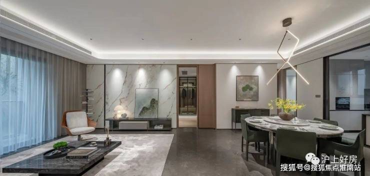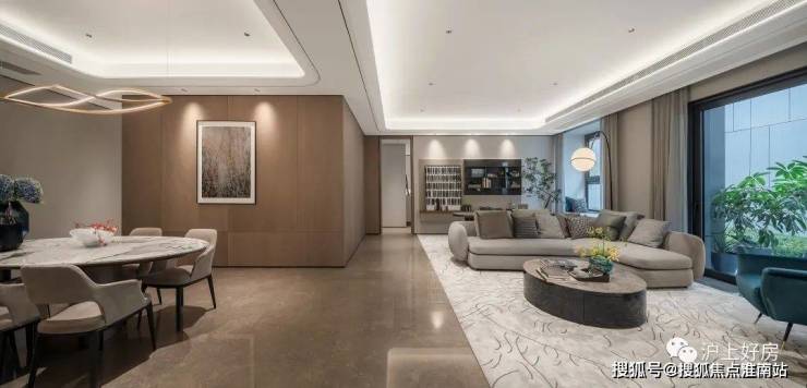 室内设计,秉承摩登东方的理念,设计以人、生活为中心,从空间本体和情感层面都回归生活,270度环幕采光,开放式会客厅设计,兼具尺度感与功能性。
